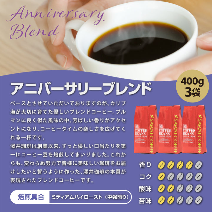 | 内容量 | ●レギュラーコーヒー アニバーサリーブレンド 400g×3袋 |