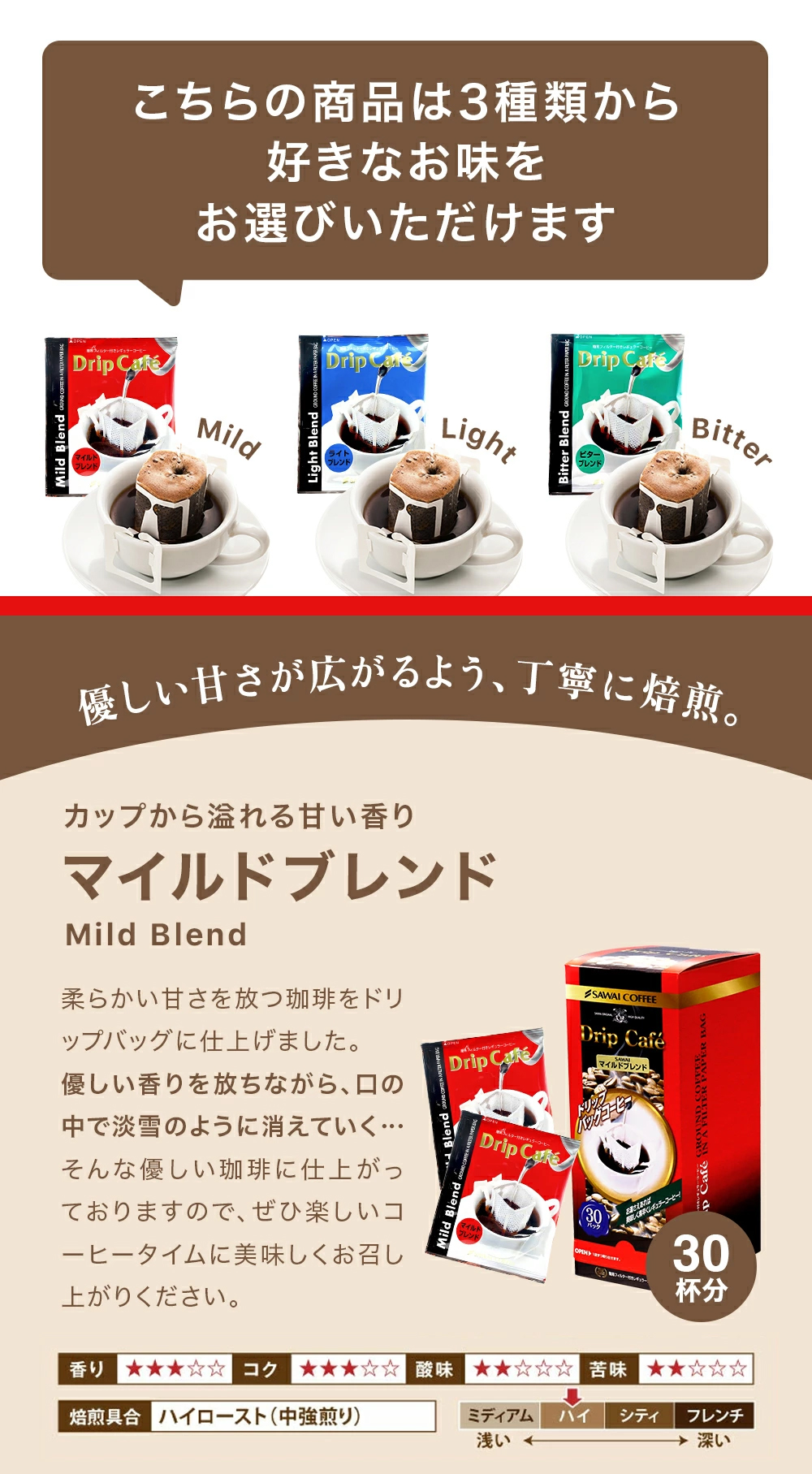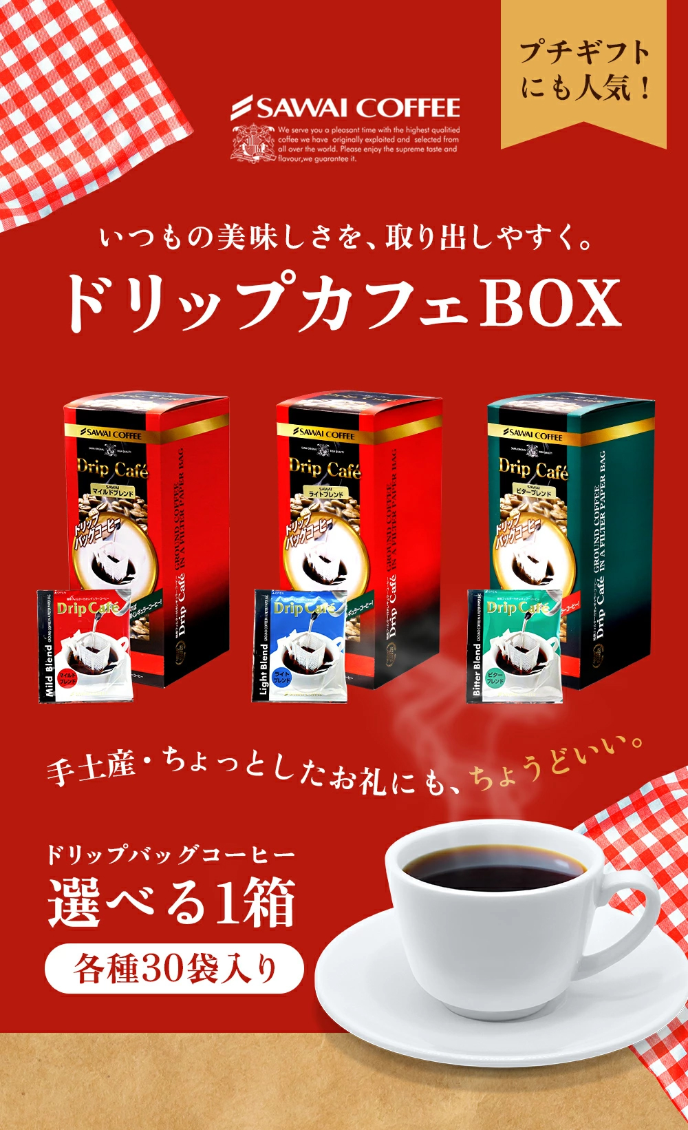 | 商品名 | 澤井珈琲 ドリップカフェ3種ギフトセット 30杯分 選べる味わい |