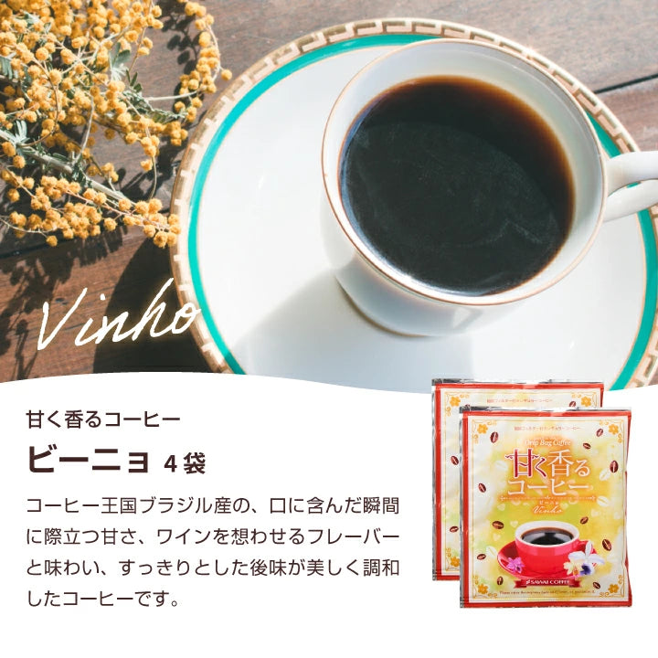 | 内容量 | ・果樹園の珈琲コロンビア ×4袋 ・甘く香るコーヒー ビーニョ ×4袋 ・エーデルワイス ×2袋 ・クレオパトラ ×2袋 ・クイーンシバ ×2袋 ・スマトラクイーン ×2袋 |